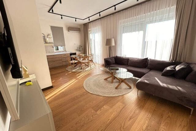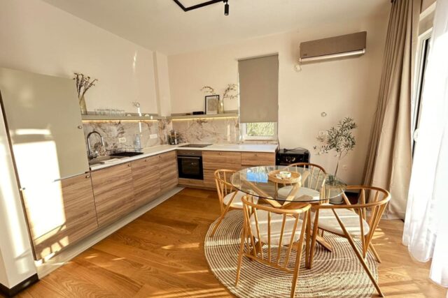 Przno’da Maestral Hotel’in üstünde satılık yeni, boş, lüks bir şekilde döşenmiş iki yatak odalı daire.