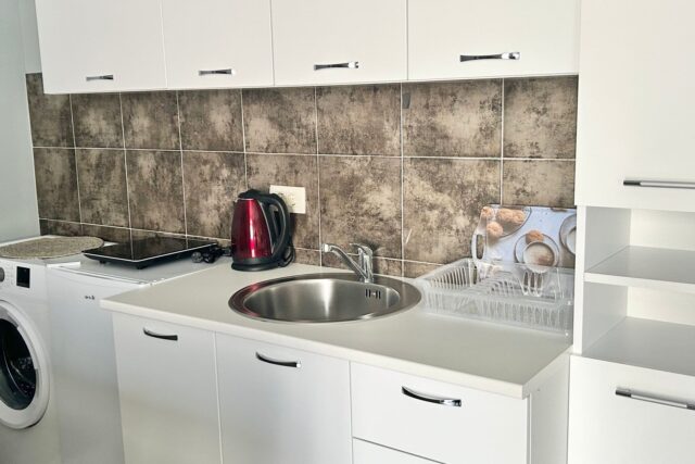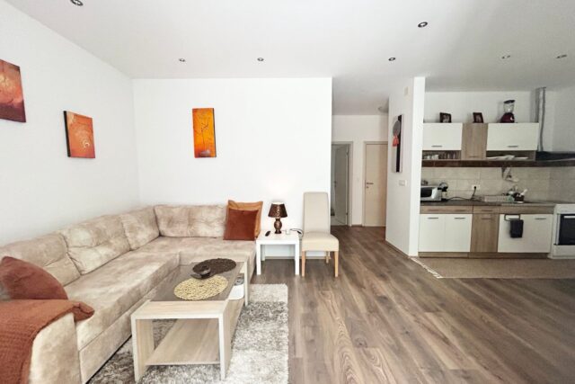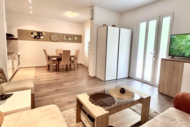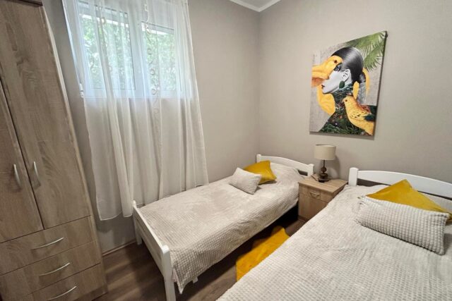 Daire, Slovenska plaža’ya sadece 600 metre uzaklıktaki sakin bir mahallede, bir konut binasının zemin katında yer almaktadır.